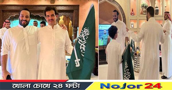 আরেকটি ছবিতে দেখা যাচ্ছে সৌদির জয় নিশ্চিত হতেই পাশে থাকা ব্যক্তিদের উল্লাসে জড়িয়ে ধরছেন বিন সালমান।