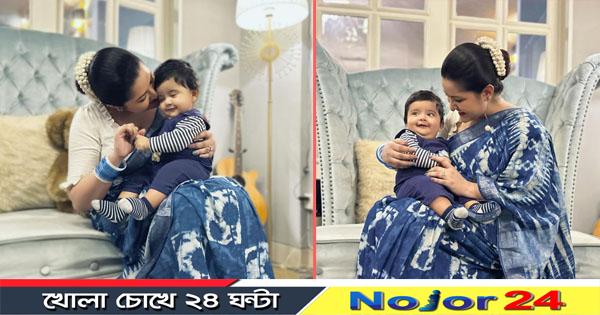 ছবিতে দেখা যায় পরীমণির কোলে হাস্যজ্জল রাজ্যকে। বেশ পুলকিত হয়ে তাকিয়ে আছে ক্যামেরার দিকে। আর পরীও মুখ হাস্যজ্জল।