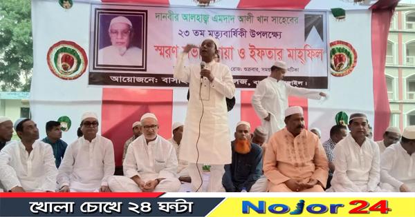মাসুদ রানা, বাসাইল (টাঙ্গাইল) প্রতিনিধি: টাঙ্গাইলের বাসাইল ডিগ্রি কলেজের প্রতিষ্ঠাতা মরহুম আলহাজ্ব এমদাদ আলী খানের ২৩ তম মৃত্যুবার্ষিকী উপলক্ষ্যে বাসাইল ডিগ্রি কলেজে স্মরণ সভা, ইফতার ও দোয়া মাহফিলের আয়োজন করা হয়েছে। শুক্রবার (৭ এপ্রিল) কলেজ ক্যাম্পাসে এ ইফতার ও দোয়া মাহফিলের আয়োজন করা হয়।