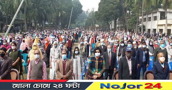 নাগরপুর (টাঙ্গাইল) প্রতিনিধিঃ জাতির পিতার সম্মান, রাখবো মোরা অম্লান; এই প্রতিপাদ্যকে সামনে রেখে টাঙ্গাইলের নাগরপুরে জাতির জনক বঙ্গবন্ধু শেখ মুজিবুর রহমানের ভাষ্কর্য ভাঙ্গার প্রতিবাদে প্রতিরোধ সমাবেশ অনুষ্ঠিত হয়েছে। শনিবার (১২ ডিসেম্বর) সকাল ১০ ঘটিকায় উপজেলার সরকারি কর্মকর্তা-কর্মচারিরদের আয়োজনে উপজেলা পরিষদ চত্বরে এ প্রতিরোধ সমাবেশ অনুষ্ঠিত হয়। এতে উপজেলার সকল সরকারি কর্মকর্তা-কর্মচারি অংশগ্রহণ করেন।