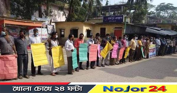 সোমবার (১৪ ডিসেম্বর) সকালে রাজাপুর প্রেসক্লাবের সামনের সড়কে ঘন্টাব্যাপী এ মানববন্ধন কর্মসূচির আয়োজন করে নারায়ণ চন্দ্র দে কবিরাজ বাড়ী মন্দির কমিটি ও সনাতন সম্প্রদায়।
