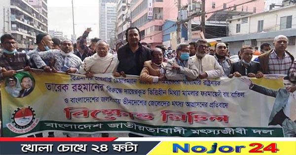 রোববার দুপুরে রাজধানীর পল্টন মোড়ে এক বিক্ষোভ মিছিলে অংশ নিয়ে তিনি এসব কথা বলেন। নড়াইলের একটি মামলায় বিএনপির ভারপ্রাপ্ত চেয়ারম্যান তারেক রহমানকে সাজা দেয়ার প্রতিবাদে জাতীয়তাবাদী মৎসজীবি দলের উদ্দ্যোগে মিছিলটি বিজয় নগর গিয়ে শেষ হয়।