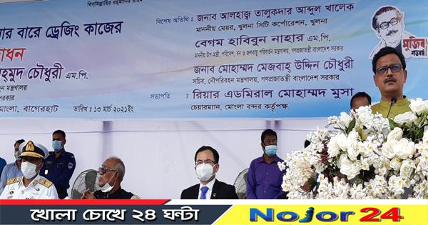 ১৩ মার্চ শনিবার দুপুর মোংলা বন্দর কর্তৃপক্ষের আয়োজনে জয়মনিরগোল বন্দর চ্যানেলের ইনারবার ড্রজিং কাজের উদ্বোধনী অনুষ্ঠানে প্রধান অতিথির বক্তৃতায় নৌপরিবহন প্রতিমন্ত্রী খালিদ মাহমুদ চৌধুরী একথা বলেন।
