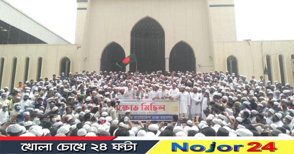 শনিবার (২৭ মার্চ) দুপুর ১২টা ১০ মিনিটে বায়তুল মোকাররমের উত্তর গেটে একটি ব্যানার নিয়ে বিক্ষোভ শুরু করেন হেফাজতের নেতাকর্মীরা। সেখানে হেফাজতের প্রায় এক হাজার নেতাকর্মী জড়ো হন।