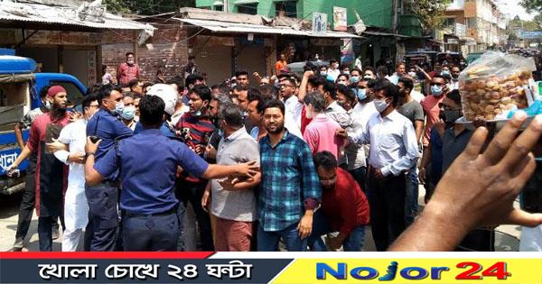 শনিবার (২৭ মার্চ) সকালে কেন্দ্রীয় কর্মসূচির অংশ হিসেবে শহরের রেজিষ্ট্রিপাড়া শাহীন স্কুলের সামনে থেকে বিক্ষোভ বের হলে পুলিশ তাতে বাঁধা প্রদান করেন।