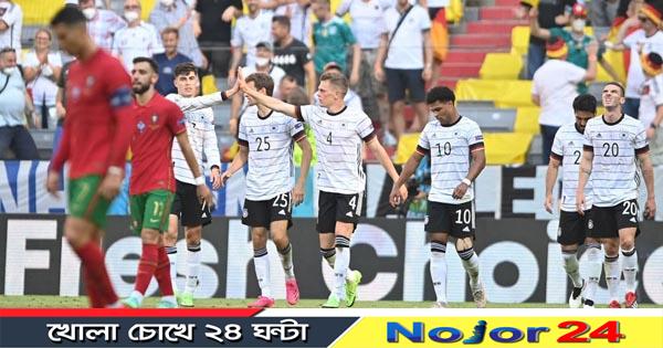 যেখানে ছয় গোলের ম্যাচে বর্তমান চ্যাম্পিয়নদের হারিয়ে চলতি ইউরো কাপে নিজেদের প্রথম জয় তুলে নিয়েছে জার্মানি। নিজেদের ইউরোর ইতিহাসে প্রথমবারের মতো ৪ গোল হজম করে ম্যাচটি ৪-২ গোলে হেরেছে পর্তুগাল।