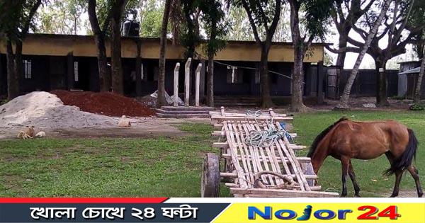 সোমবার দুপুর একটার দিকে উপজেলার গোপালপুর সমবায় উচ্চ বিদ্যালয়ে গিয়ে কাউকে পাওয়া যায়নি। দেখা যায়, বিদ্যালয় মাঠের এক-তৃতীয়াংশ জায়গা জুড়ে ঠিকাদার তার নির্মাণ সামগ্রী ইট বালু শুরকি দিয়ে দখল করে রাখছে। বাকী জায়গা ঘোড়ার গাড়ী ও মাইক্রোবাসের অস্থায়ী গ্যারেজে পরিণত হয়েছে। মাঠজুড়ে বিচরণ করছে ঘোড়া ও ছাগল ভেড়া। শ্রেণী কক্ষে ধুলা ময়লা জমে রয়েছে।