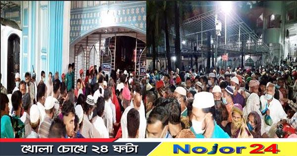 বৃহস্পতিবার (১ জুলাই) রাতে স্বাস্থ্যবিধি অমান্য করে সেখানে জড়ো হয় হাজারো ভক্ত। সরকারি নির্দেশনা অমান্য করে জনসমাগম করে ওরসের আয়োজন করায় করোনা সংক্রমনের ঝুঁকি বৃদ্ধি পাচ্ছে।