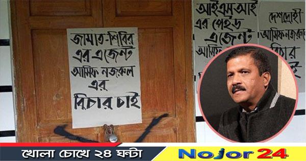 সরেজমিনে গিয়ে দেখা যায়, অধ্যাপক আসিফ নজরুলের কক্ষে অতিরিক্ত দুটি তালা ঝুলছে এবং তার কক্ষের দরজায় ও দেয়ালে ‘জামায়াত-শিবিরের এজেন্ট আসিফ নজরুলের বিচার চাই!’, ‘আইএসআই ’র পেইড এজেন্ট আসিফ নজরুলের বিচার চাই!’,‘দেশদ্রোহী আসিফ নজরুলের বিচার চাই!, ‘জঙ্গিবাদের মদদদাতা আসিফ নজরুলের বিচার চাই! ‘,’তালেবানদের দালাল আসিফ নজরুলের বিচার চাই!’-লেখা পোস্টার লাগানো রয়েছে।