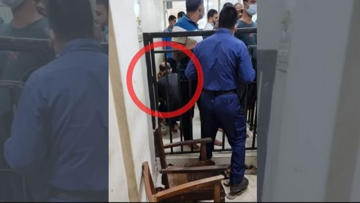 প্রকাশিত ছবিতে দেখা যাচ্ছে, আদালত কক্ষের কাটগড়ার ভেতরে হাঁটু গেড়ে বসে মোবাইল ফোনে কথা বলছেন বরখাস্ত ওসি প্রদীপ। এ সময় কয়েকজন ব্যক্তি আশপাশে দাঁড়িয়ে ছিলেন।