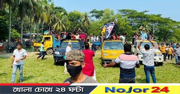 প্রত্যক্ষদর্শী সূত্রে জানা গেছে, আজ শনিবার সকাল থেকে বিভিন্ন এলাকার শত শত নেতা-কর্মী পিকআপ, ট্রাক, মাইক্রোবাসযোগে এসে মোশতাকের বাড়ির সামনে জড়ো হতে থাকেন। তাঁদের স্লোগানে মুখর হয়ে ওঠে এলাকা। এতে উপজেলা আওয়ামী লীগের পাশাপাশি মহিলা আওয়ামী লীগ, যুবলীগ, ছাত্রলীগ, কৃষক লীগ ও শ্রমিক লীগের নেতা-কর্মীরা অংশ নেন।