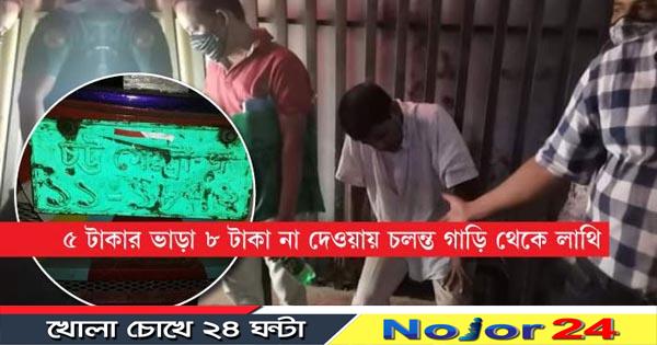 মামুন উর রশীদ নামে ঘটনার এক প্রত্যক্ষদর্শী ফেসবুকে লিখেছেন, ‘ওয়াসার মোড় থেকে লালখানবাজার এসে এক যাত্রী ৫ টাকা ভাড়া দিলে ৮ টাকার জন্য হেলপারের সাথে যাত্রীর কথা কাটাকাটি শুরু হয়। এর একপর্যায়ে যাত্রীকে লা’থি মেরে নিচে ফেলা দেওয়া হয়।’