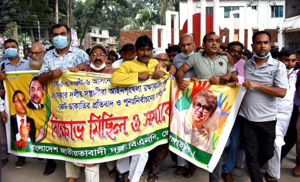 সোমবার (১৯ অক্টোবর) সাকালে স্থানীয় শহীদ মিনার থেকে একটি বিক্ষোভ মিছিল বের হলে পুলিশী বাধায় তা পন্ড হয়ে যায়। পরে জেলা বিএনপির সাধারণ সম্পাদক এডভোকেট ফরহাদ ইকবালের নেতৃত্বে সমাবেশ অনুষ্ঠিত হয়।