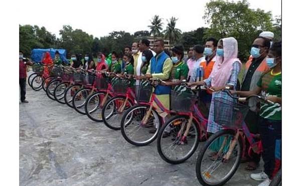 বৃহস্পতিবার (২২ অক্টোবর) শহীদ স্মৃতি আদর্শ সরকারি কলেজ মাঠে দুরত্ব বজায় রেখে নান্দাইল পৌরসভা ও উপজেলার বিভিন্ন ইউনিয়নের বিদ্যালয়ের ২৫ জন ছাত্রীকে বাইসাইকেল দেয়া হয়।