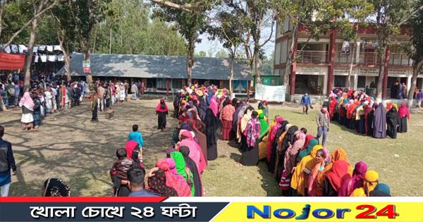 সরেজমিনে গিয়ে দেখা যায়, পুরুষ ভোটারের চেয়ে নারী ভোটারের উপস্থিতি অধিকতর। শীত অপেক্ষা করে বেলা বাড়ার সাথে সাথে ভোটারদের উপস্থিতি ছিল উপচেপড়া।
