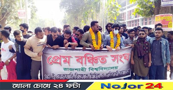 ভালোবাসা দিবসে একাধিক প্রেমের বিরুদ্ধে মিছিল-সমাবেশ করেছেন রাজশাহী বিশ্ববিদ্যালয়ের ‘প্রেমবঞ্চিত সংঘ’ নামের একটি সংগঠনের সদস্যরা।
