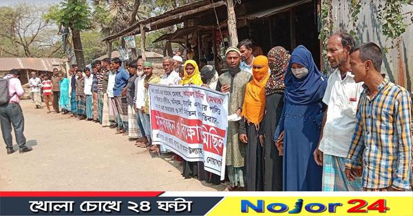 মানববন্ধনে বক্তারা কামাল মেম্বারের নানা অনিয়ম দূর্ণিতী ও অসহায় মানুষের ওপর নির্যাতনের দৃষ্টান্ত শাস্তির দাবী জানান।