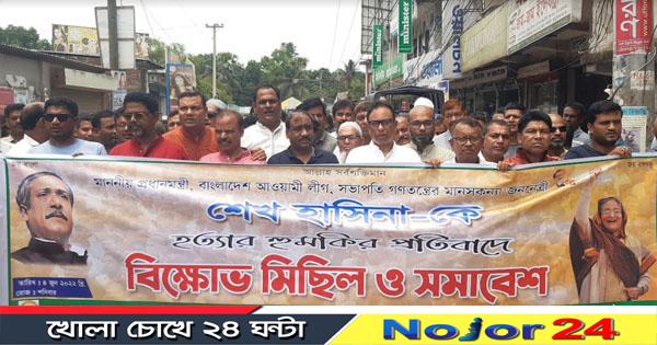 শনিবার (৪ জুন) বেলা সাড়ে ১২ টায় উপজেলা আওয়ামী লীগ, অঙ্গ ও সহযোগী সংগঠনের যৌথ উদ্যোগে প্রতিবাদ সমাবেশ শেষে এক বিক্ষোভ মিছিল দলীয় কার্যালয় থেকে শুরু হয়ে উপজেলা সদর বাজার এলাকাসহ বিভিন্ন সড়ক প্রদক্ষিণ করে পুনরায় দলীয় কার্যালয় গিয়ে শেষ হয়।