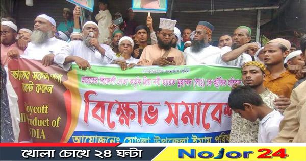 বক্তারা তাদের বক্তব্য বলেন, বিশ্ব নবী ও তার পরিবারকে সর্বোত্তম চরিত্রের সনদ প্রাদন করে মহান আল্লাহ পবিত্র কুরআন শরীফে আয়াত নাজিল করেছেন। যে নবী সমস্ত জিন ইনসানের জন্য উত্তম আদর্শের নমুনা, সেই নবীর চরিত্রে যারা দোষ তালাশ করে তারা পিতৃপরিচয়হীন। বিজেপি নেতাদের অপমানজনক মন্তব্য বিশ্ব মুসলিম উম্মাহ’ র কলিজায় মারাত্মক ভাবে আঘাত হেনেছে। কোটি কোটি নবীপ্রেমিকের অন্তরকে ক্ষতবিক্ষত করেছে। এই অবস্থায় কোন ঈমানদার চুপ করে ঘরে বসে থাকতে পারে না। ইতিমধ্যেই মুসলিম বিদ্বেষী ভারতের বিজেপি নেতাদের ইসলামের বিরুদ্ধে লাগামহীন বক্তব্য বিশ্বব্যাপী ধর্মীয় বিদ্বেষ উস্কে দিয়েছে। এ জঘন্য অপরাধের জন্য শুধু দল থেকে বহিষ্কার যথেষ্ট নয়। তাদের বক্তব্য প্রত্যাহার করে বিশ্ব মুসলমানদের কাছে প্রকাশ্যে ক্ষমা চাইতে হবে। অন্যথায় মুসলিম বিশ্ব ঐক্যবদ্ধ হয়ে ভারতকে সমুচিত জবাব দিতে বাধ্য হবে।