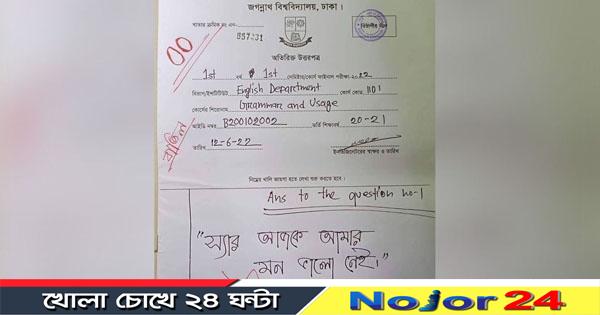 তানভীর মাহতাব নামের এই শিক্ষার্থী পরীক্ষার অতিরিক্ত উত্তরপত্রে ‘স্যার, আজকে আমার মন ভালো নেই’ লিখে ফেসবুকে পোস্ট দিয়েছেন। বিষয়টি নিয়ে হাসিঠাট্টা তামাশার পাত্রে পরিণত হয়েছেন।