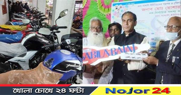 নির্বাচনে জিতে কর্মীদের ১৬টি মোটরসাইকেল কিনে দিলেন চেয়ারম্যান